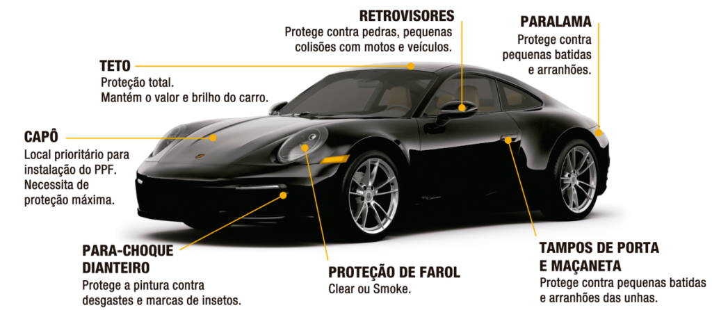 ​O Protekt PPF é uma película de proteção de pintura transparente com uma camada de esmalte de alto brilho que elimina riscos ao longo do tempo, tornando-se virtualmente auto-curável.
